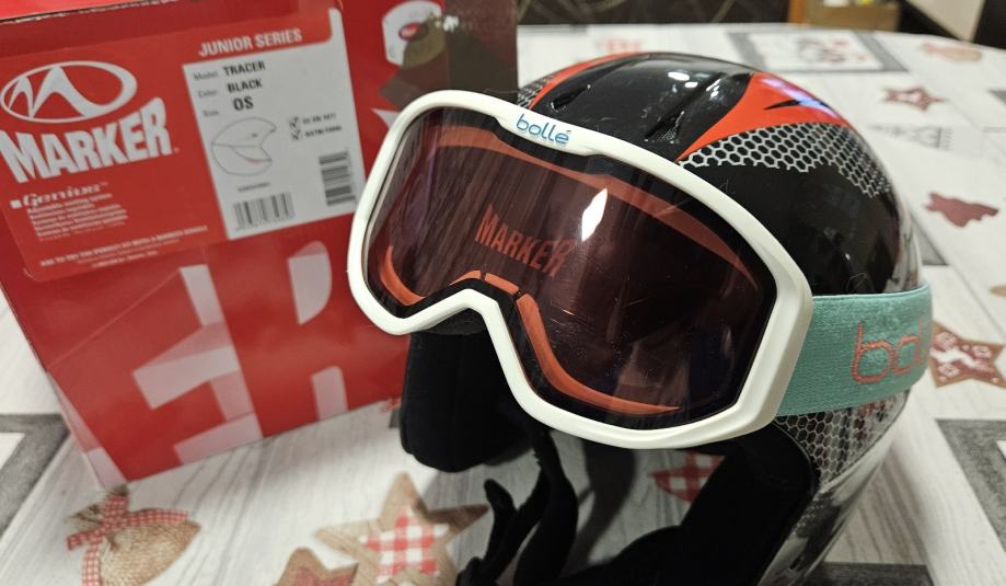 Prodam smučarsko čelado Marker Junior Series skupaj z očali Bolle. Čelada je črno-rdeče barve z belimi detajli in je zasnovana za mlajše smučarje. Zraven priložena bela smučarska očala Bolle.