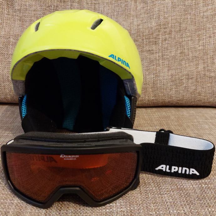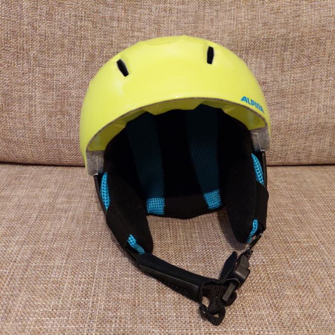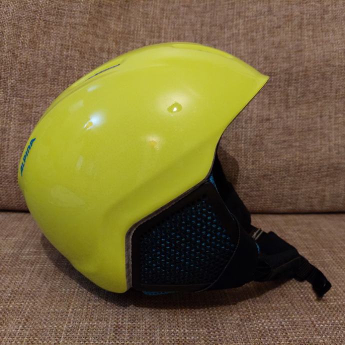 Odlično ohranjena otroška smučarska čelada zelene barve.