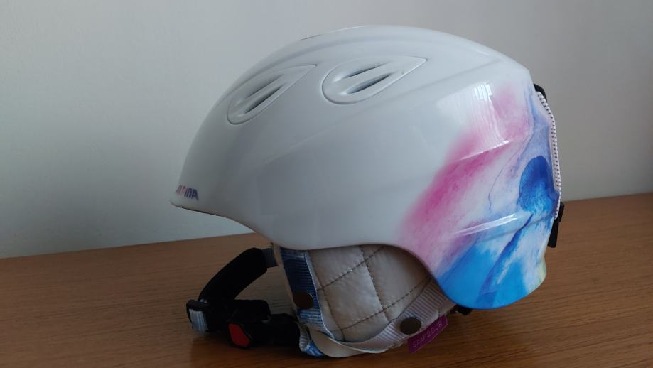 Prodam otroško smučarsko čelado Alpina Grap 2.0 Junior, velikost 51-54 cm. Zraven pripadajo še smučarska očala.