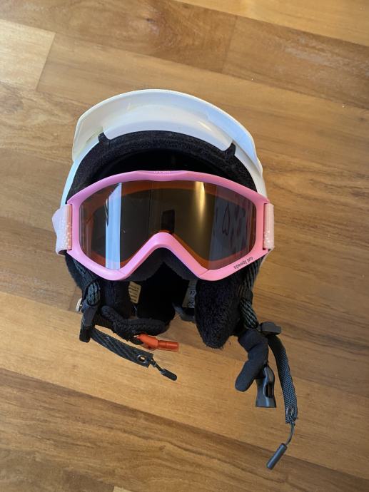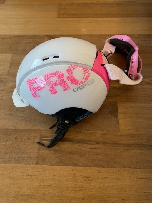 Pridam zelo lepo otroško smučarsko čelado Casco Pro poleg so tudi otroška smučarska očala Uvex. Zelo lepo ohranjeno. Uporabljala 1 deklica 2xteden dni smučanja.