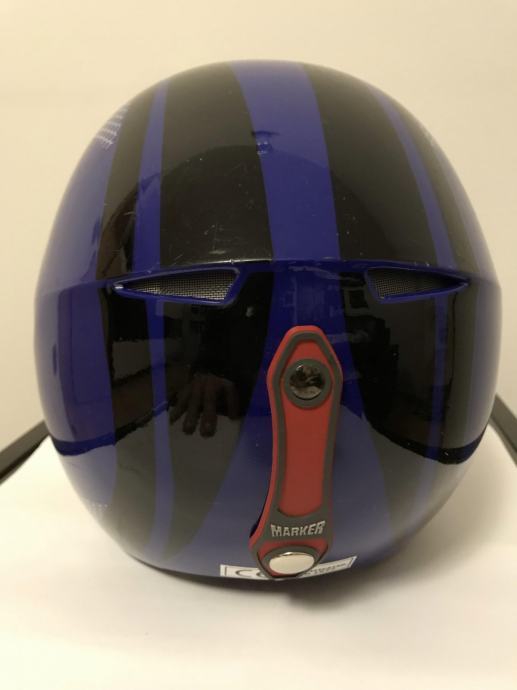 - z gumijastim trakom na zatilju za fiksiranje traka smučarskih očal.