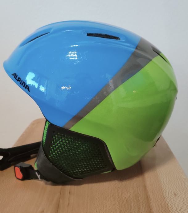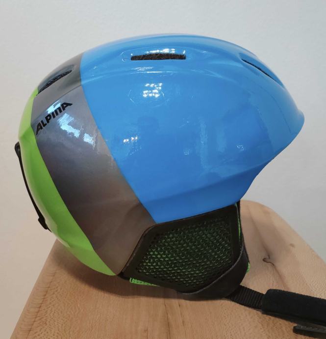 Prodam zelo lepo ohranjeno otroško smučarsko čelado znamke Alpina velikosti 51-55 cm./ 350g Prvi lastnik, nosil jo je en otrok. Čelada ima nastavljivo velikost ter odstranljivo pralno notranjo podlogo.
