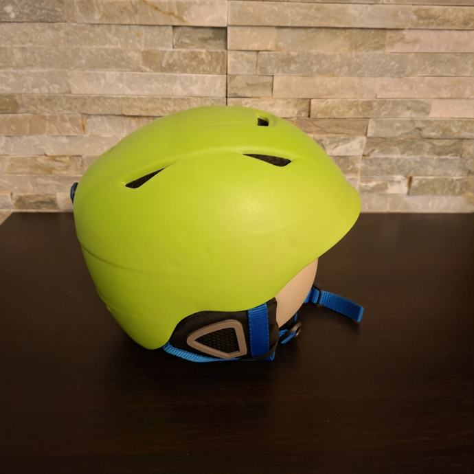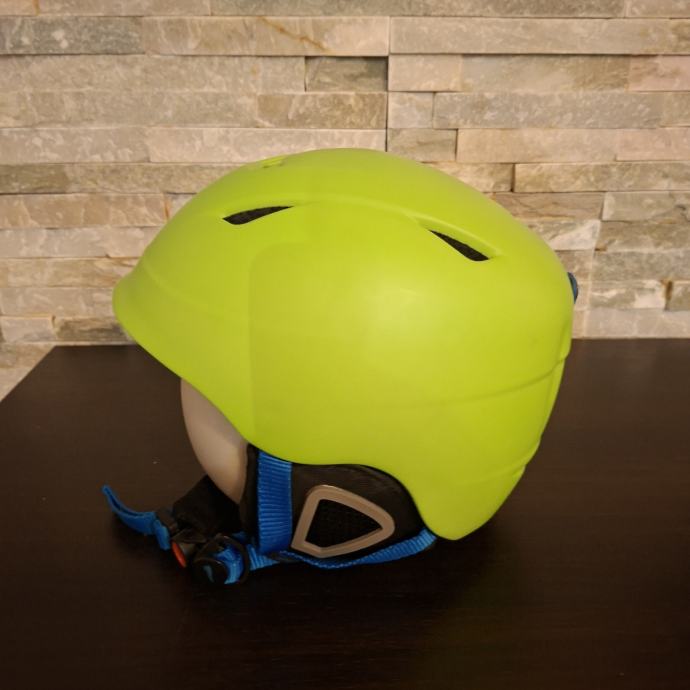 Prodajam rabljeno otroško smučarsko čelado v živahno zeleni barvi s prilagodljivimi modro-črnimi trakovi. Čelada ima dobro prezračevanje in je v dobrem stanju, primerna za zaščito vašega otroka med zimskimi aktivnostmi.