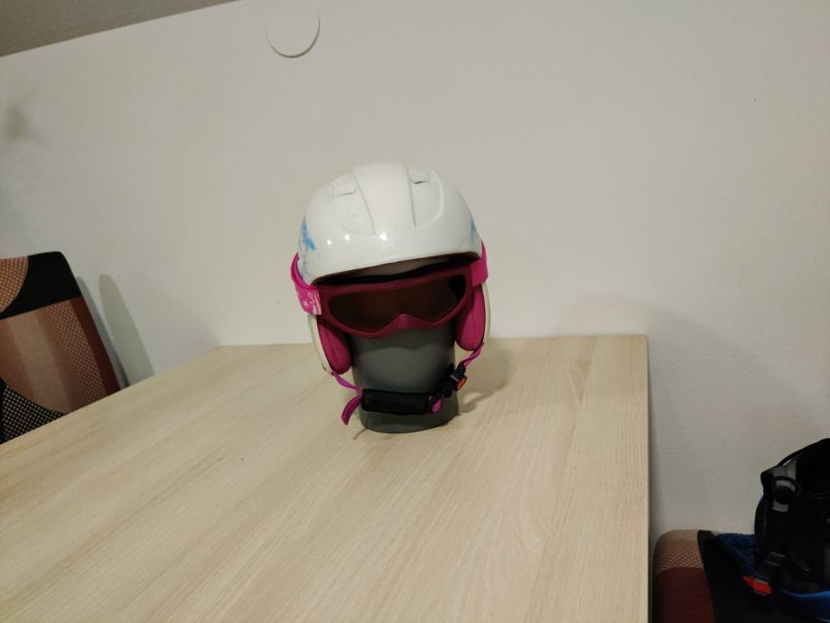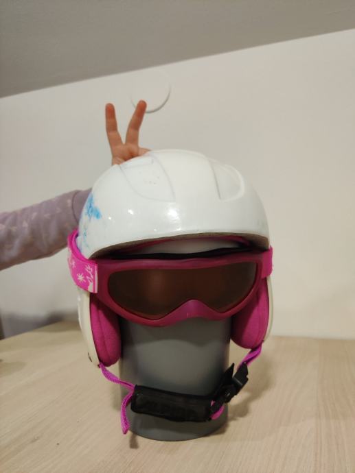Prodamo otroško smučarsko čelado in smučarska očala. Je bolj primerna z deklice, očala priložimo. Ima zračnike in znake obrabe, je pa uporabna ;-)