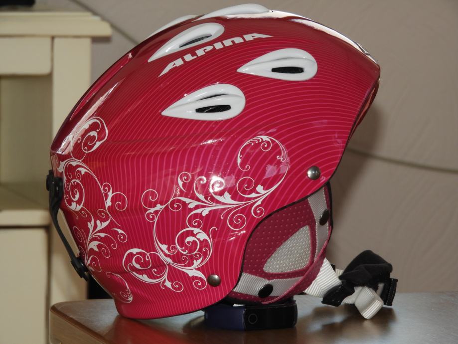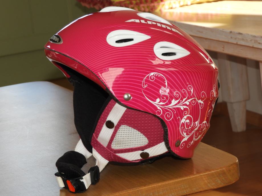 Prodam rabljeno smučarsko čelado Alpina, model Grap. Nastavljive velikosti med 54 in 57 cm in teže 465g.
