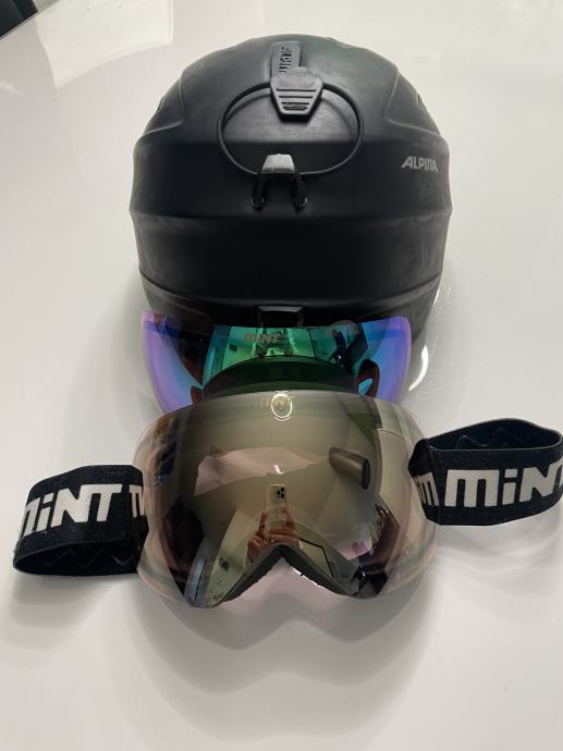 Prodam smučarsko čelado Alpina (54-57) in smučarka očala Mint (dvojna - za meglo in sonce).