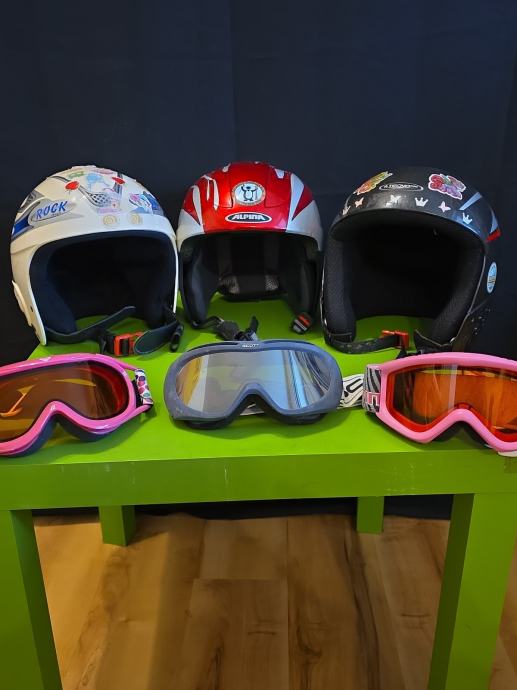 Otroške smučarske čelade velikost 48 do 58 in otroška smučarska očala prodam. Samo osebni prevzem.