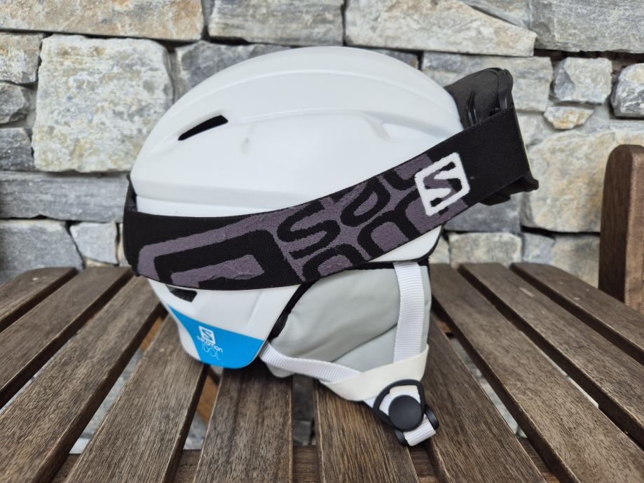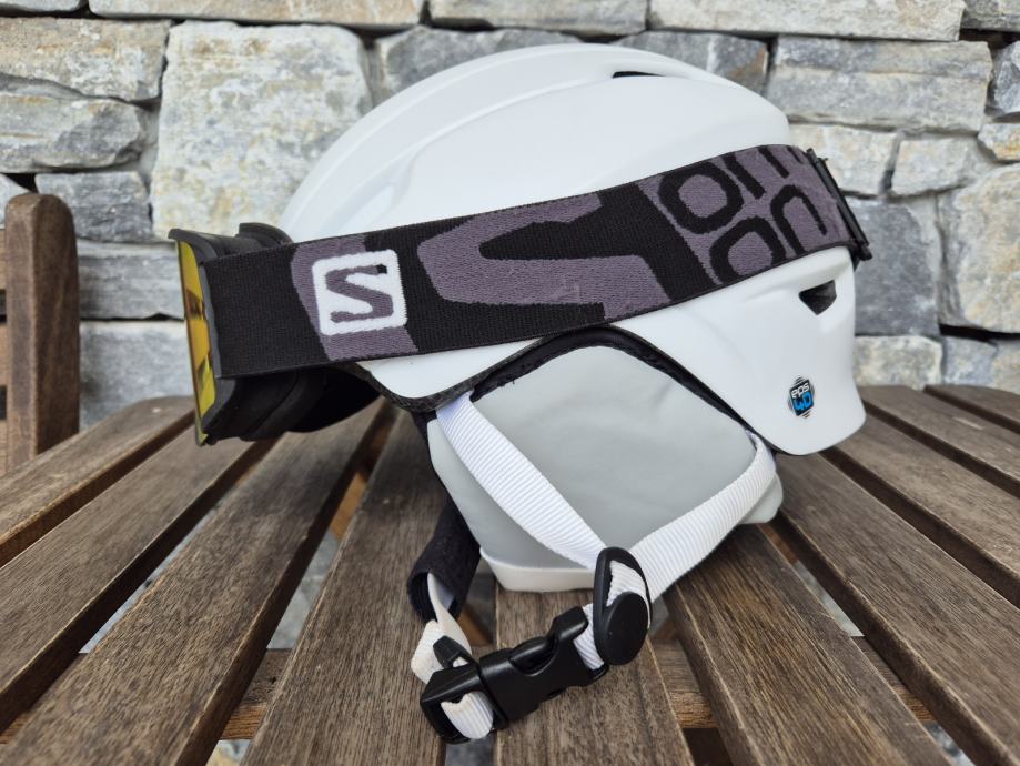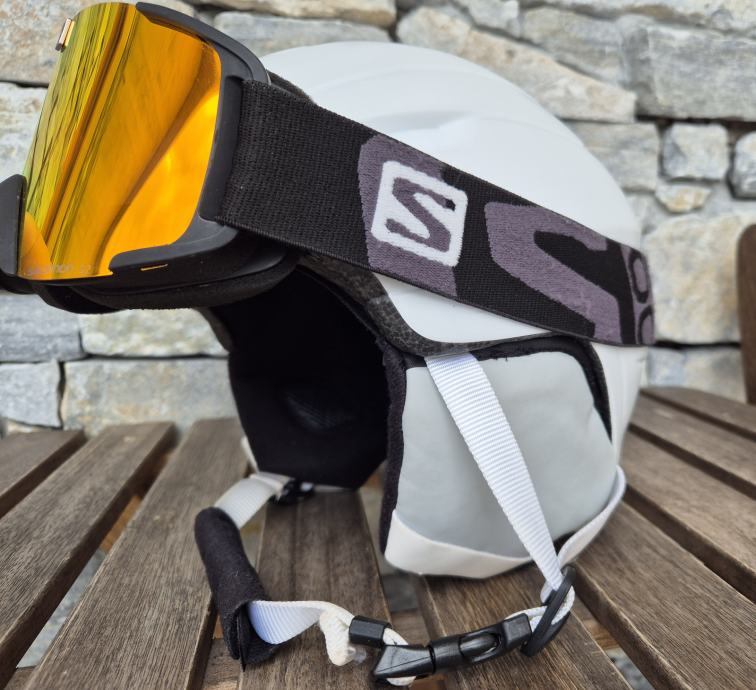 Ženska bela Salomon Idol skupaj s smučarskimi očali. Velikost M 56-59cm. Cena 50€ za komplet