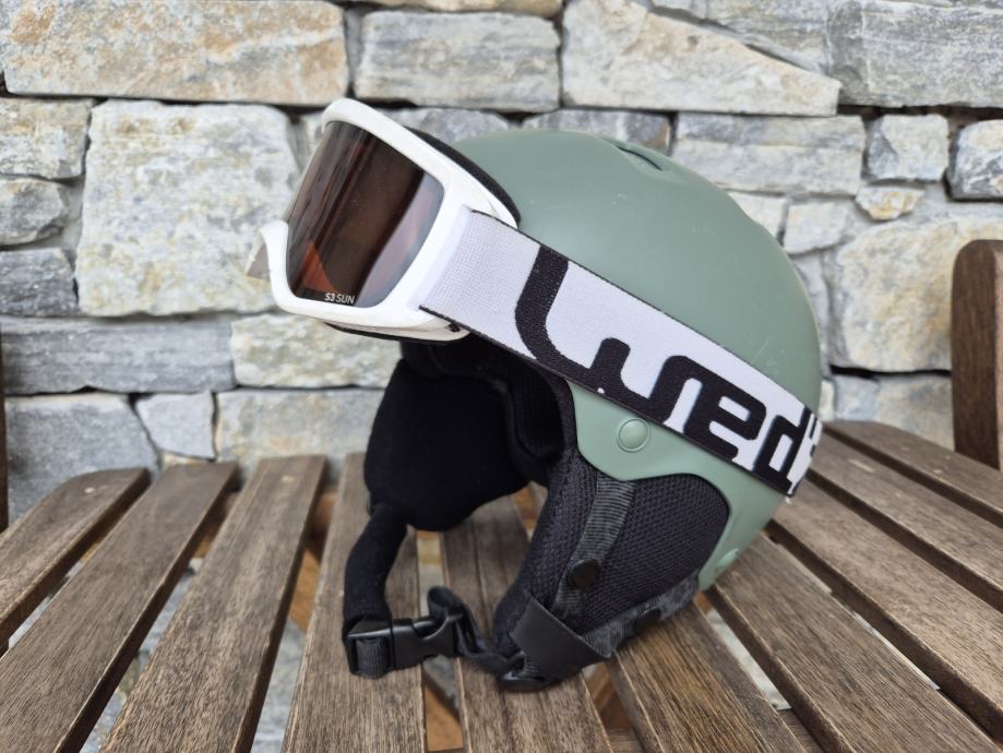 Otroška rjava čelada Wedze skupaj s smučarskimi očali Wedze. Velikost S 52-54. Cena za komplet 20€