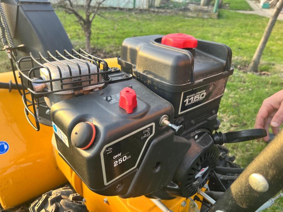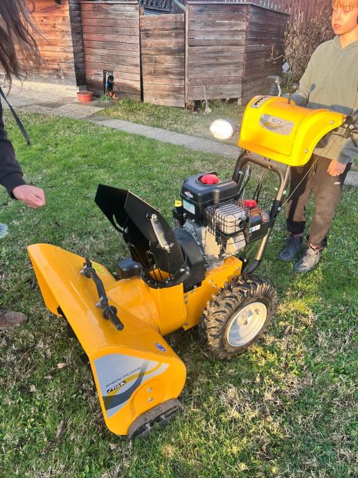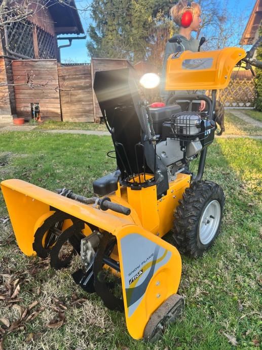 Prodajam zaradi selitve. Ima nastavljiv usmerjen izmet in meče sneg do 10m daleč. Ima šest prestav naprej in dve nazaj. Ročke za upravljanje imajo celo gretje! Vžig je bodisi z vlekom ali pa se priklopi na elektriko in pritisne gumb za zagon. Ima tudi usmerjen žaromet. Luksuz.