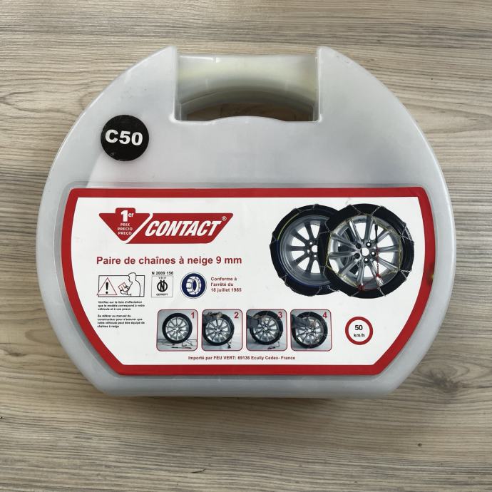 Cena novih: 39,99 EUR (Povezava: https://www.feuvert.fr/chaines-et-chaussettes-a-neige/contact-2-chaines-neige-contact-iii-c50/p520837.html)