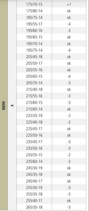 175/70-15 175/80-14 185/75-14 195/55-17 195/60-16 195/65-15 195/70-14 195/75-14 205/45-18 205/50-17 205/55-16 205/65-15 205/70-14 215/40-18 215/55-16 215/60-15 215/65-14 225/35-19 225/40-18 225/45-17 225/50-16 235/45-17 235/50-16 235/55-15 235/60-14 245/30-19 245/35-18 245/40-17 255/30-19 255/35-18 255/40-17 265/35-18