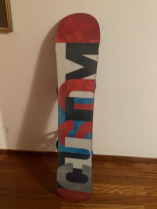 Snowboard Burton Custom, uporabljen zelo malokrat zato zelo lepo ohranjen. Vezi na boardu so tudi Burton. Sam snowboard je mišljen bolj za freestyle ali freeride, vendar se ga lahko uporablja tudi za druge stile boardanja.