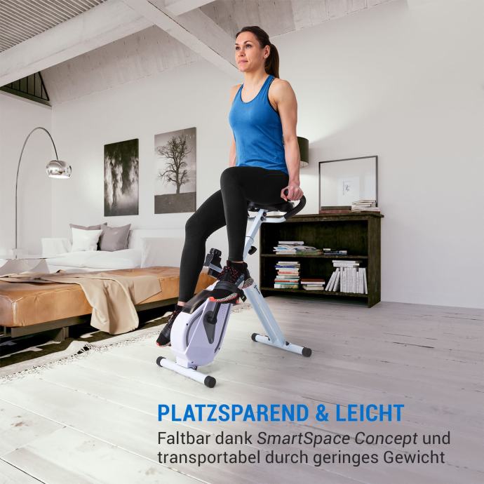 * Fit pri delu: kardio kolo za uporabo za pisalno mizo v homeofficee ali doma * Stabilen štart: nedrseči pedali in višinsko nastavljiv, udoben sedež z bočnimi držali * Vse na pogled: praktična namizna konzola za spremljanje zmogljivostnih podatkov * Tvoj trening: 8-stopenjsko nastavljiv magnetni upor MagResist za tvojo zmogljivostno raven * Prostorsko varčen & lahek: zložljivi zaradi koncepcije SmartSpace Concept in prenosen zaradi majhne teže