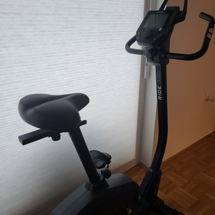 Specifikacije : z izbiro med desetimi različnimi programi vadbe lahko vadbo oblikujete individualno samo zase. Zaslon prikazuje podatke o srčnem utripu, frekvenci poganjanja, času vadbe, hitrosti, razdalji in porabi energije. Preprosta navigacija po meniju uporabnika usmeri do želenega programa. Osebni polnilnik hrani vse vaše podatke in jih ne izpušča. Ride 300 ne navdušuje samo s svojimi funkcijami, ampak je zasnovan tudi za zagotavljanje najvišje ravni udobja. Pedala, ki se samodejno usmerijo, elektronsko enostavno nastavljiva zavora in nizek pristop podpirajo udobno izkušnjo na najvišji ravni. Sobno kolo ima magnetni zavorni sistem in 8 kg oscilacijske mase.