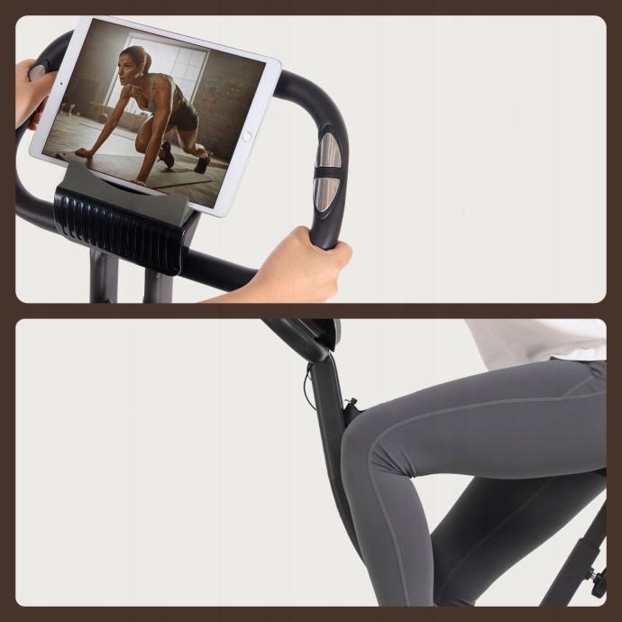 Ergonomski ročaji zagotavljajo trden in udoben oprijem, nedrseča pedala pa povečujejo varnost med vadbo. Zahvaljujoč zložljivemu dizajnu lahko napravo enostavno pospravite v omaro ali pod posteljo, zaradi česar je idealna izbira za stanovanja in majhne prostore.