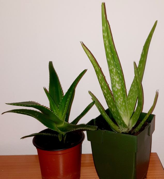 Pravkar presajeni mlajši rastlini Aloe vera in Aloe arborescens.