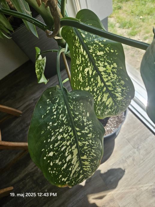 Prodam difenbahijo, veliko priblizno 140 cm. Večkrat sem jo presadila, zato morda ni v najboljšem stanju glede stabilnosti v visino, drugace lepo raste, pravkar odcvetela. Prodajam jo zaradi alergijskih reakcij otrok na to rožo, je strupena za hisne ljubljencke.