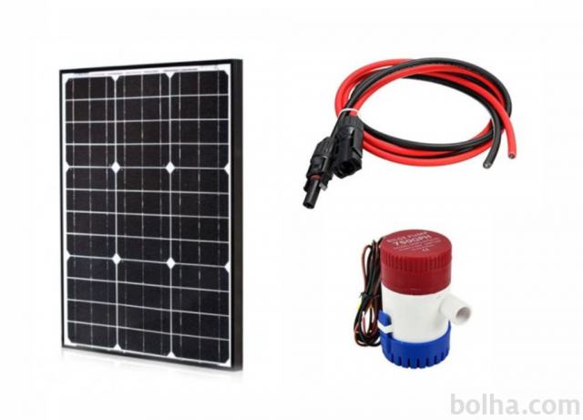 Solarni komplet ribnik za letno zračenje in pretakanje stoječih ribnikov ali mlak, brez regulacije. Črpalni sistem 12V je sestavljen iz mono solarnega panela 50W, enostransko zaključenega solarnega flex halogen kabla z parom MC4 10m 2.5mm oz. 2x 5m, ter solarnega shur bilge črpalke 30W 500GPH z pretokom ob polni osvetlitvi 25-30L/min višina 1-2m