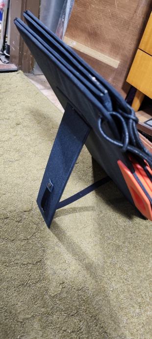 Zložjiv solarni panel 100W zelo solidno izdelan z dobrim izkoristkom z torbo za kabel, in nastavljive nogice za kot proti soncu. Idealen vir elektrike za camping ali barko, za polnenje akumulatorja...