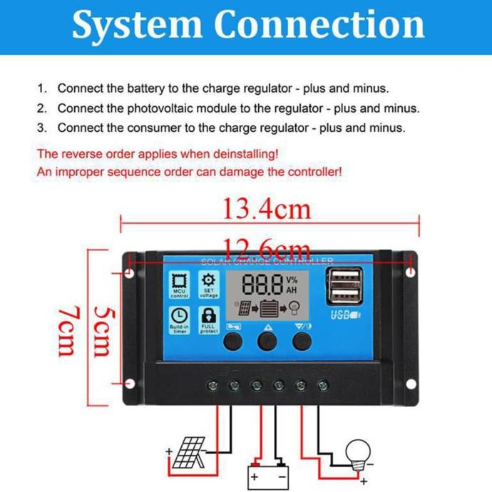polnjenja za fotovoltaične panelov,se prilagaja malim in srednjim sistemom,kjer je treba polniti tako gelne kot tekoče