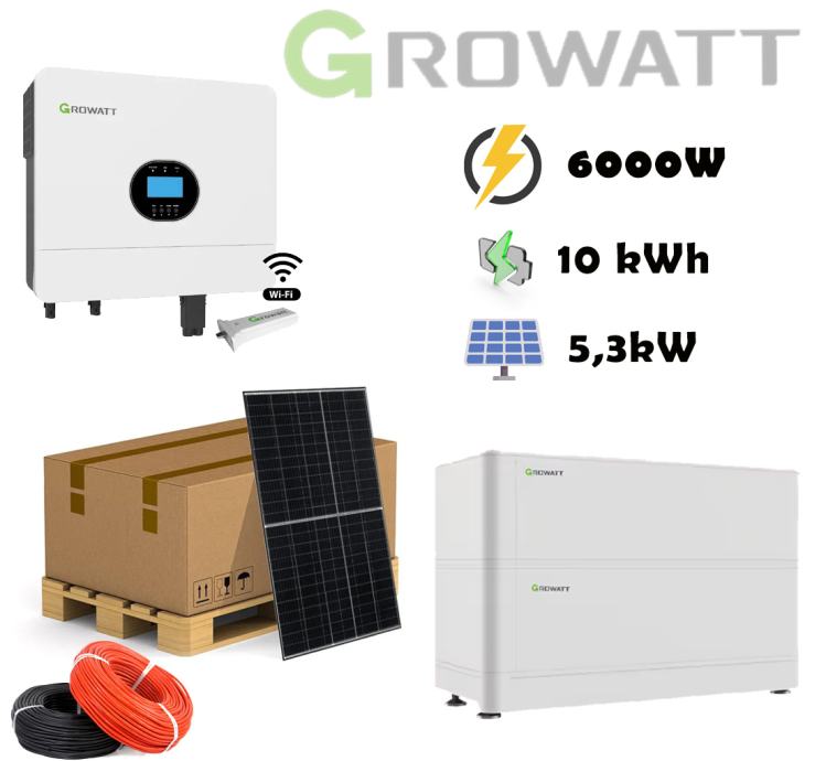 GROWATT - Samooskrbna Solarna Elektrarna - z li-ion akumulatorji 6.000 ciklov.Elektrarna ne potrebuje soglasja Sodo za montažo , saj spada pod otočne sisteme.Naredite vaš dom samooskrben in pozabite na račun za elektriko.Solarni kompleti so odvisno od moči primerni za samooskrbo vaše hiše , vikenda, zidanice počitniške brunarice . Akcijske cene z brezplačno dostavo na vaš dom.