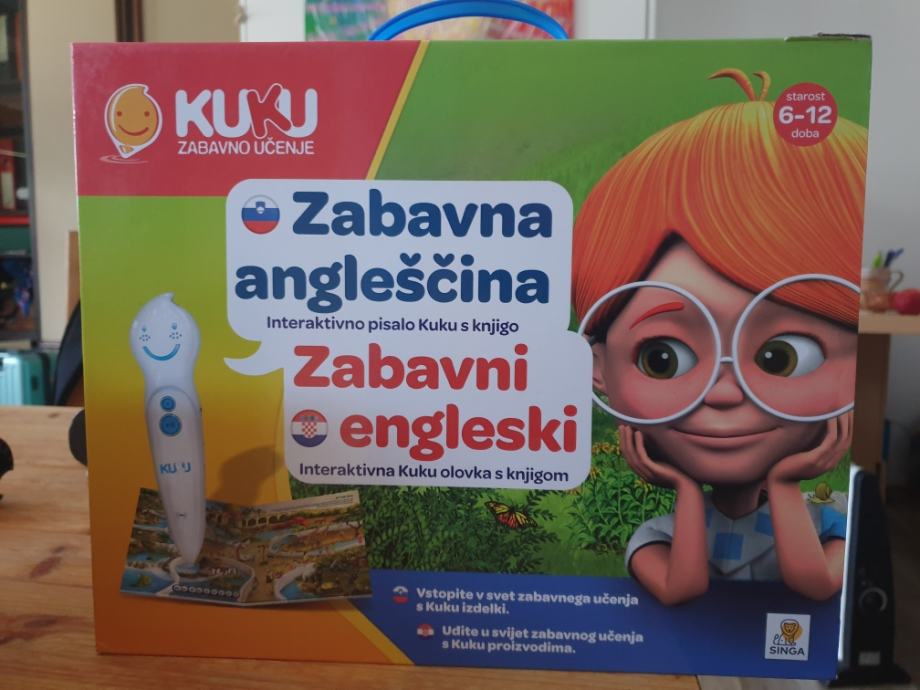 Prodam novo interaktivno pisalo za učenje angleščine: Zabavno učenje je idealno za učenje angleščine tako na začetni kot na nadaljevalni stopnji. Na zabaven način lahko obogatiš svoj besedni zaklad in se naučiš pravilnega izgovarjanja angleških besed in preprostih stavkov. V knjigi slišiš osebe, katerih materni jezik je angleščina, dodan pa je tudi prevod v slovenščino. Pridobljeno znanje lahko preveriš na kvizih treh težavnostnih stopenj.