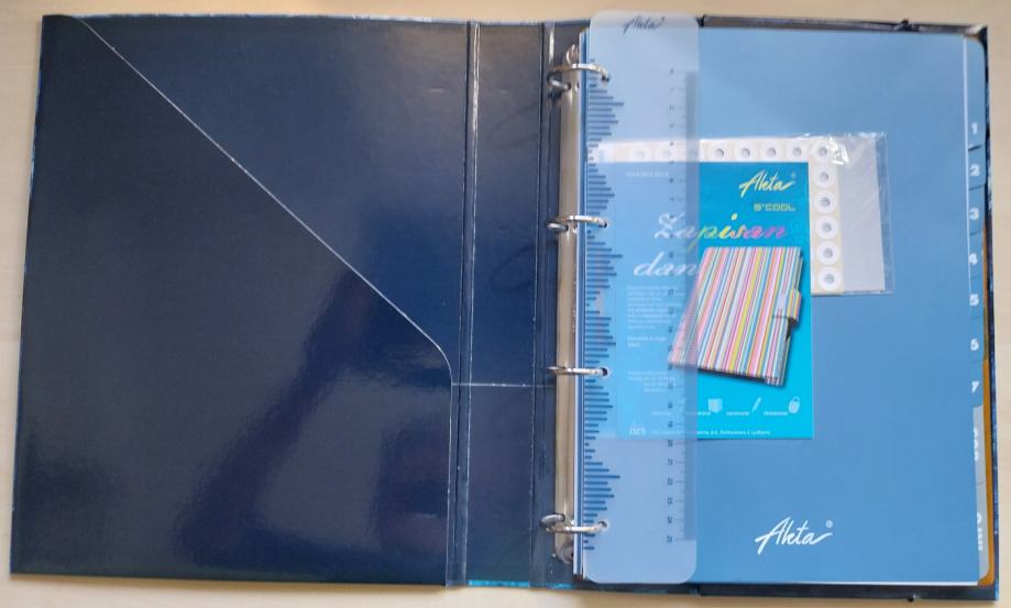 Nova kompletna Akta, velikost A 4 z dodatno mapo za shranjevanje listov prodam za pol cene.