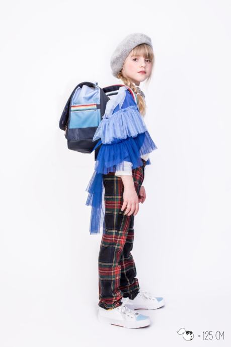 Usnje je zamenjal vodoodbojni in odporen proti umazaniji 360D poliester, ki se zlahka očisti, krasi pa ga z modni dizajn, ki prihaja naravnost iz modne steze. Mali šolarji bodo izgledali kot prave male modne ikone. Torba pa ima tudi v notranjosti vodoodbojno podlogo.