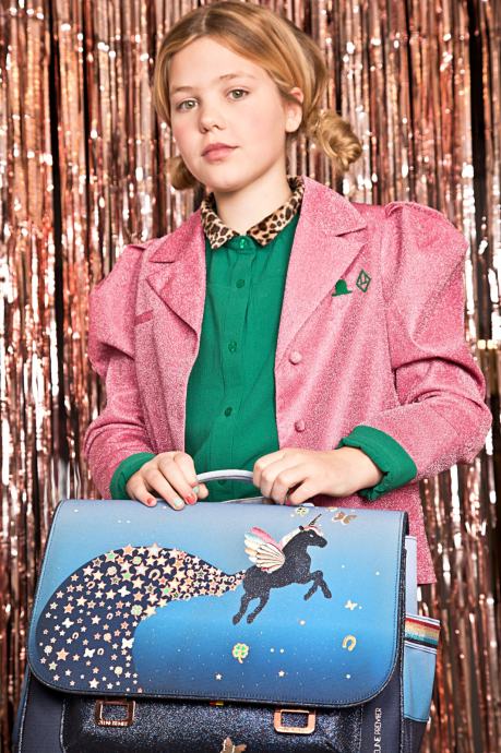 Model na sliki je Sue, visoka je 125 cm in nosi It Bag Midi Unicorn Universe.