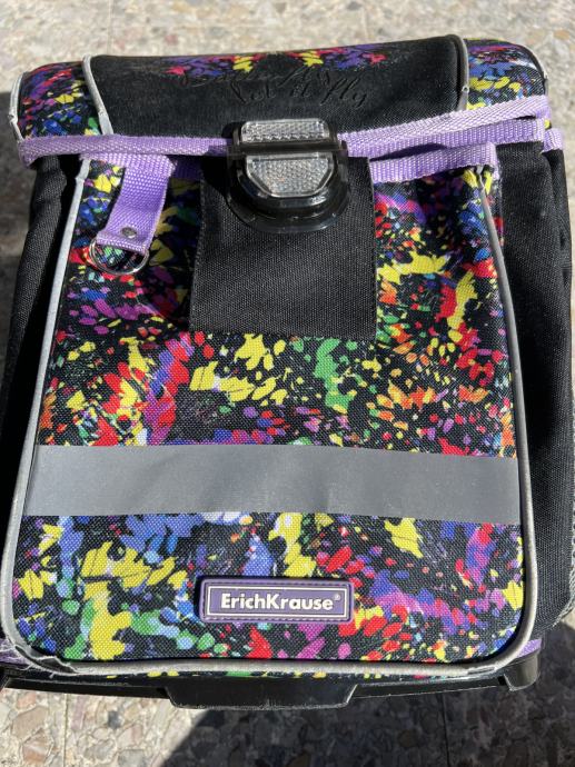 * Tri predelke: Glavni prostoren predal z elastičnim držalom za zvezke in učbenike velikosti A4+ ter dva dodatna predala z mini organizatorjem za pisarniške potrebščine.