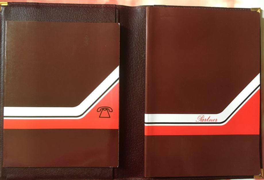 Prodam NOVO usnjeno 2 delno MAPO Partner, rjave barve, z vloženima dvema blokoma. Odlična priložnost za vse vrste zapiskov, primerno tudi za študente. Velikost povečan A5.