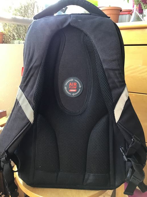 Nahrbtnik ima nastavljive in prezračevalne naramnice ter ergonomsko in zračno hrbtišče.
