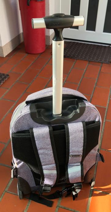 Prodamo malo rabljeno šolsko torbo s kolesi in ročajem, ter naramnicami.