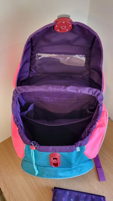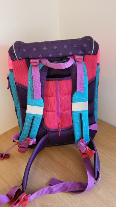 Torba ima nastavljivo hrbtišče za različne velikosti otroka.