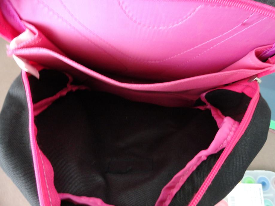 Šolska torba target za deklice. Primerna za drugo triado. Ima 2 predalčka ob strani ,enega spredaj na zadrgo,enega pod pokrovom na ježka.