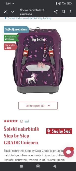 Šolska torba, lepo ohranjena, lahka - 950 g. Kvalitetna, nastavljive naramnice.