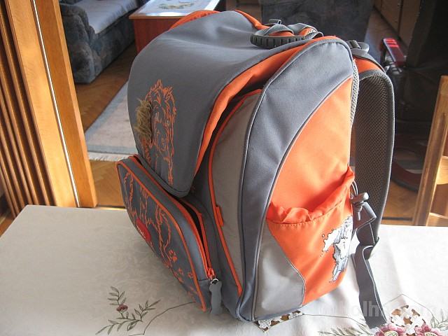 Prodam fantovsko šolsko torbo, znamke Akta S'cool. Ima ojačano hrbtišče in več večnamenskih žepov (predalov), med drugim 2 stranska žepa. Torba zaradi zaščitenega sprednjega dela ne prepušča. V uporabi je bila eno šolsko leto.
