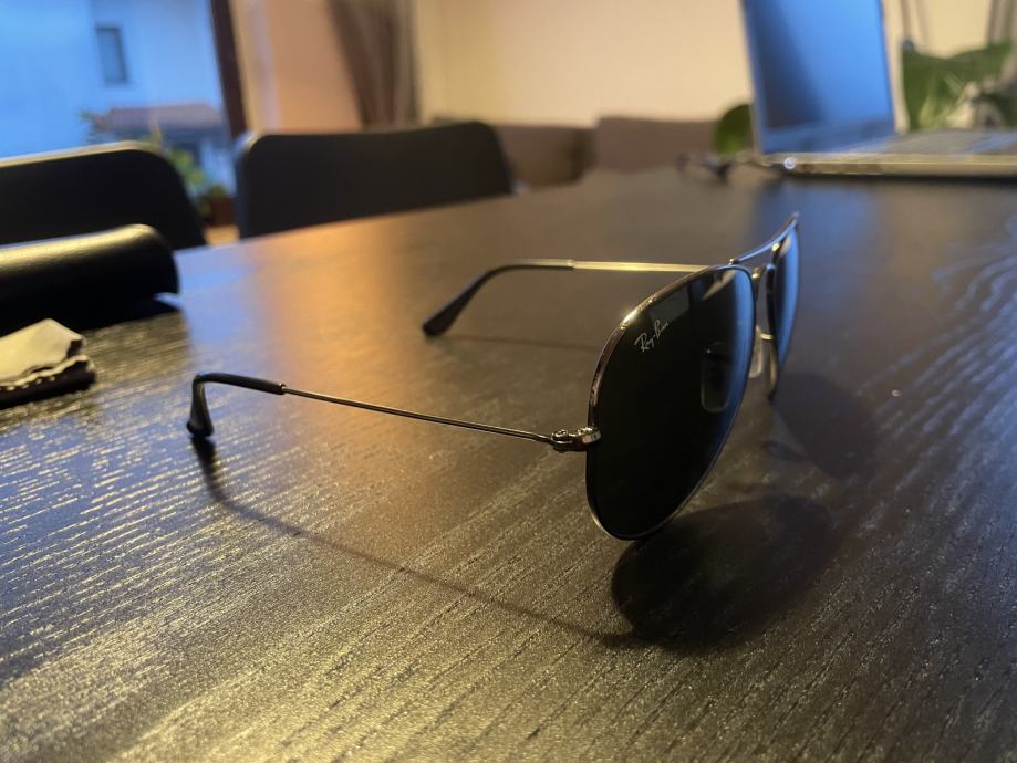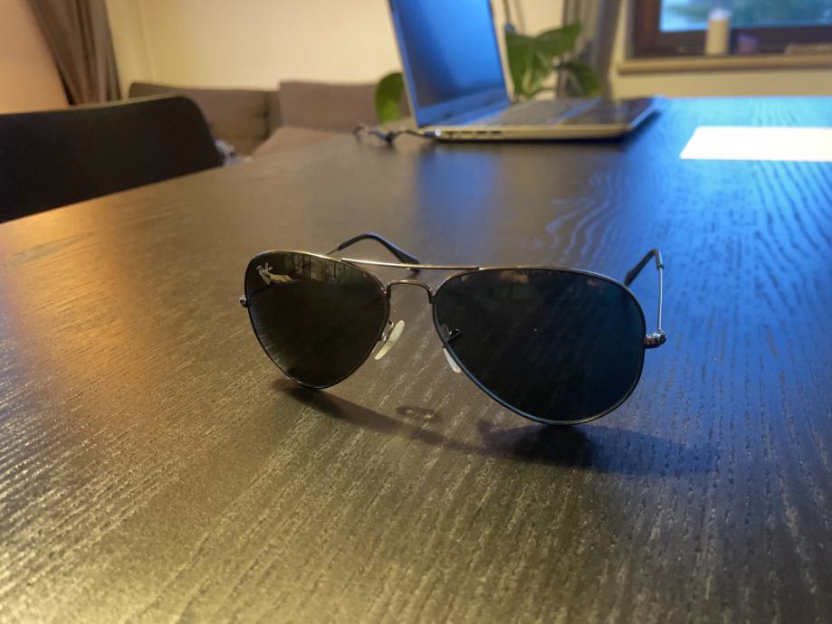 Prodam leto in pol stara sončna očala Ray Ban aviator classic RB3025 W0879 58-14. Klasična ray ban očala barve gun metal grey, z zelenimi NE polariziranimi lečami.