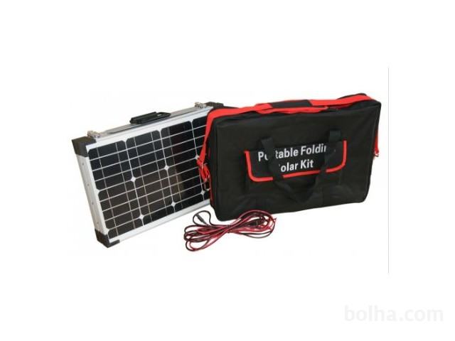 Solarni kovček – monokristalni 60 Watt, za polnjenje 12V akumulatorjev. Vključen regulator polnjenja in transportna torba.
