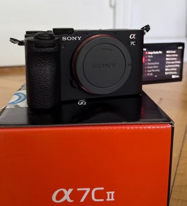 Sony a7c II z dvema originalnima Sony NPFZ100.CE baterijama. Kamera je bila zelo malo uporabljena, predvsem za fotografijo, zato sem se odločil za prodajo. Zaščitna folija je že na zaslonu, kamera pa je vedno bila v foto nahrbtniku, brez prask in poškodb.