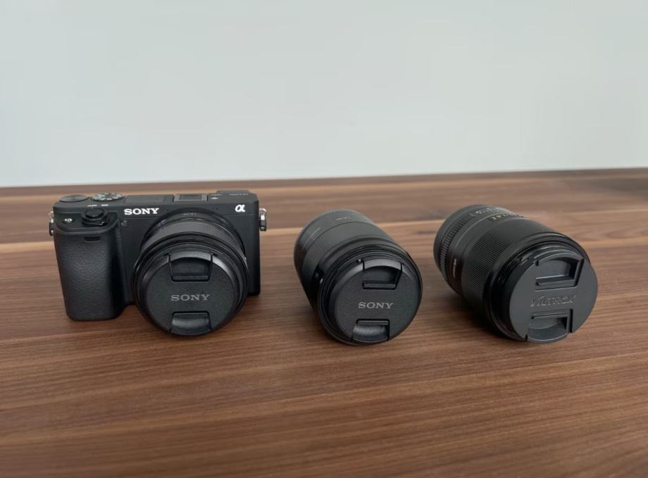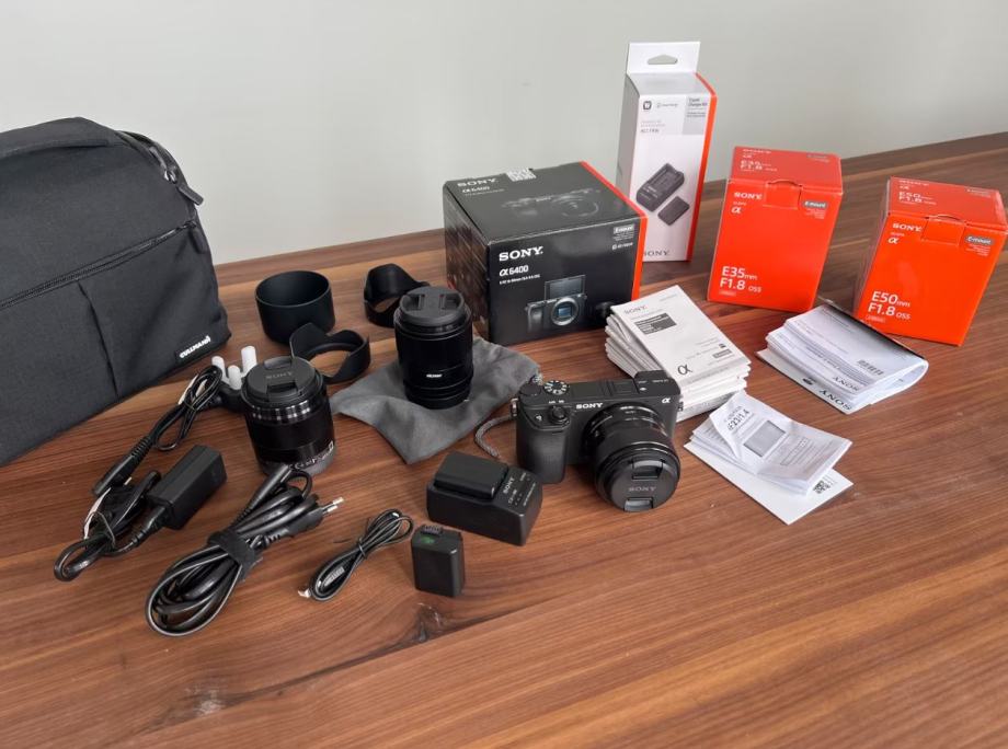 Prodajam svojo kamero SONY a6400 skupaj s tremi hitrimi fiksnimi objektivi in vsemi dodatki, ki jih vidite na fotografijah.