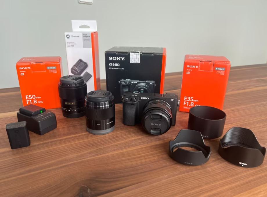 Prodajam svojo kamero SONY a6400 skupaj s tremi hitrimi fiksnimi objektivi in vsemi dodatki, ki jih vidite na fotografijah.