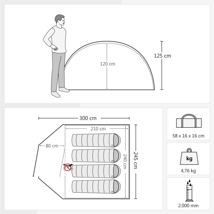 Notranji šotor velikost: 295 x 240 x 120 cm