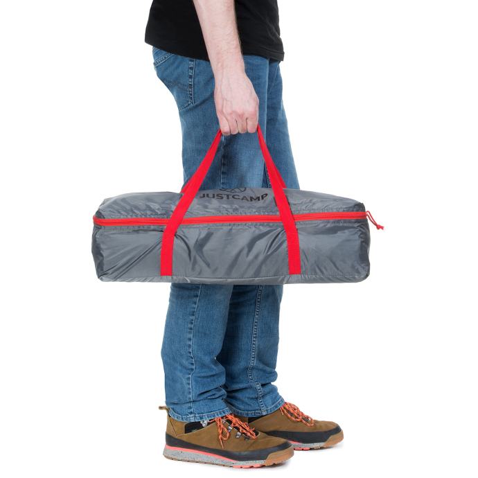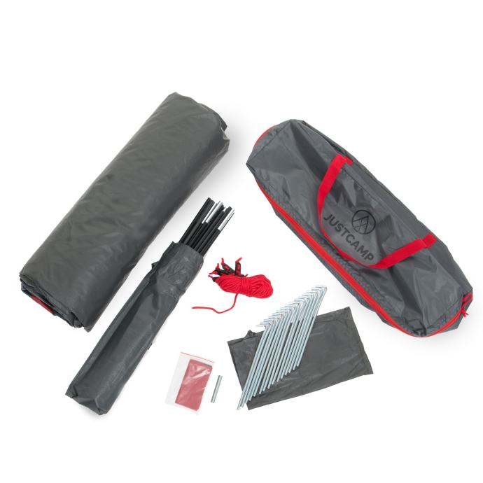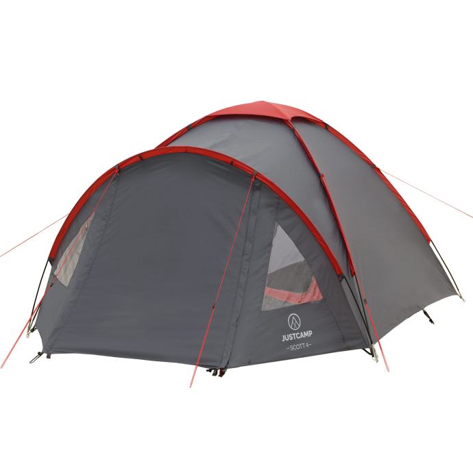Justcamp Scott 4 je sodobna različica klasičnega šotora. Zahvaljujoč prezračevanju strehe je v šotoru za 4 osebe vedno svež zrak in brez nadležnih žuželk, saj je zaščiten z mrežami proti komarjem. Vhod je podaljšan z zaščiteno verando, ki omogoča dodaten prostor za čevlje ali opremo. Sprednja zadrga je dodatno zaščitena pred vremenskimi vplivi in ohranja suh šotor. V veliki spalni kabini ponuja Scott 4 dovolj prostora za namestitev 4 vzmetnic. Visok rob talnega platna v spalnici prepreči vstop žuželkam in ščiti pred mokroto. Kamp šotor Justcamp Scott 4 je idealen za krajša kampiranja, potovanja in festivale.