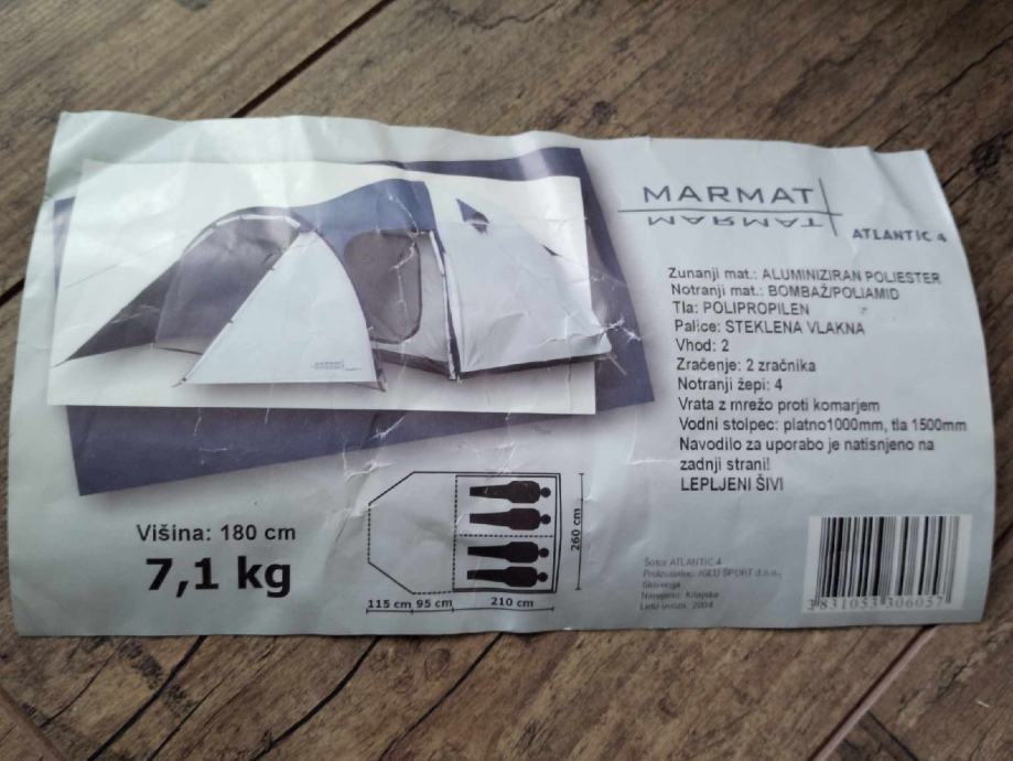 Prodam odlično ohranjen šotor Marmat, za 4 osebe , namenjen za kampiranje, ribolov, itd. Šotor je brez kakršnih koli poškodb ali ne pravilnosti,enkrat uporabljen .