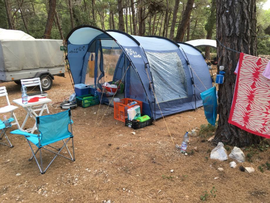 Vse še celo, palice, šotor, zadrge in elastike. Teža: 15kg
