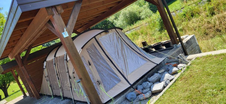 Prodamo družinski šotor za 7 oseb (cena novega je bila 999funtov). Ima tri spalnice in velik predprostor. Več lahko vidite na: http://www.ukcampsite.co.uk/tents/p/Outwell-Missouri-River-7/1530 Šotor nima vodnega stolpca in je iz vodoodpornega materijala (polycotton), letos impregniran. Mi smo ga uporabili 12x 14dni. Zraven damo napihljive blazine za v spalnice . Na voljo bo avgusta!