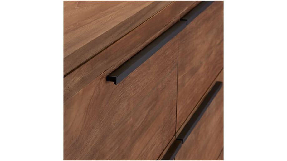 Linea's clean, linear styling in FSC-certified reclaimed solid teak is left unfinished in its natural state to showcase the wood's unique variations in knots, grain, texture and color. Open framing open framing of the headboard and footboard lends an airy, floating feel.