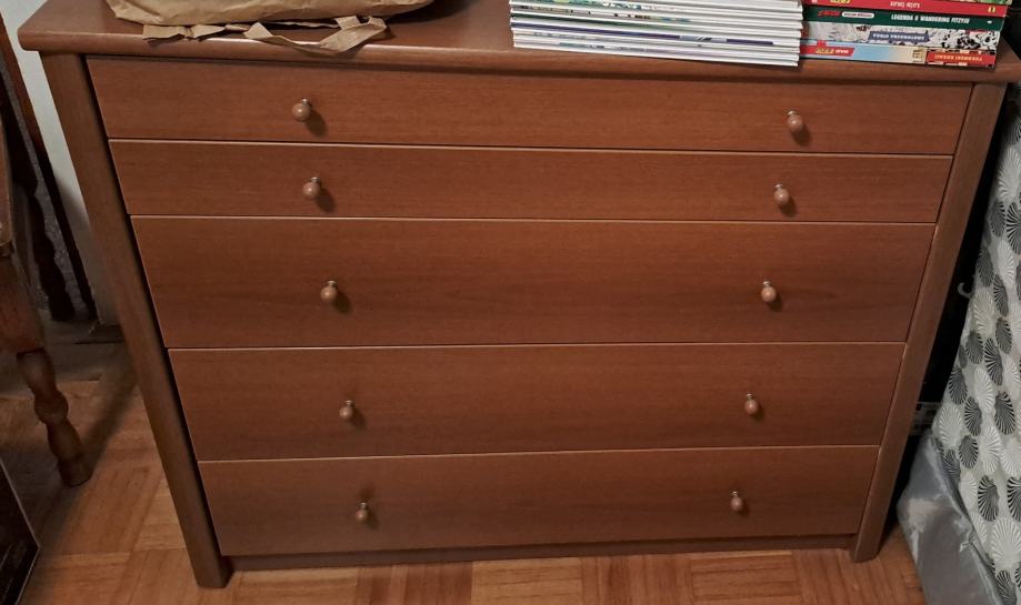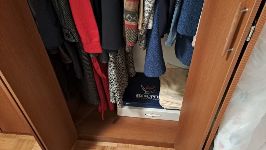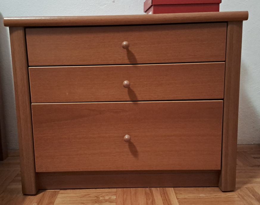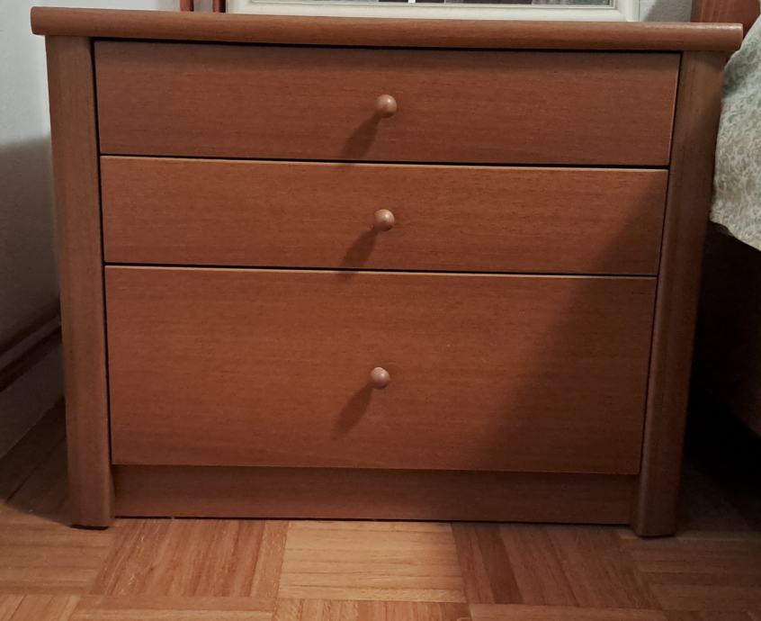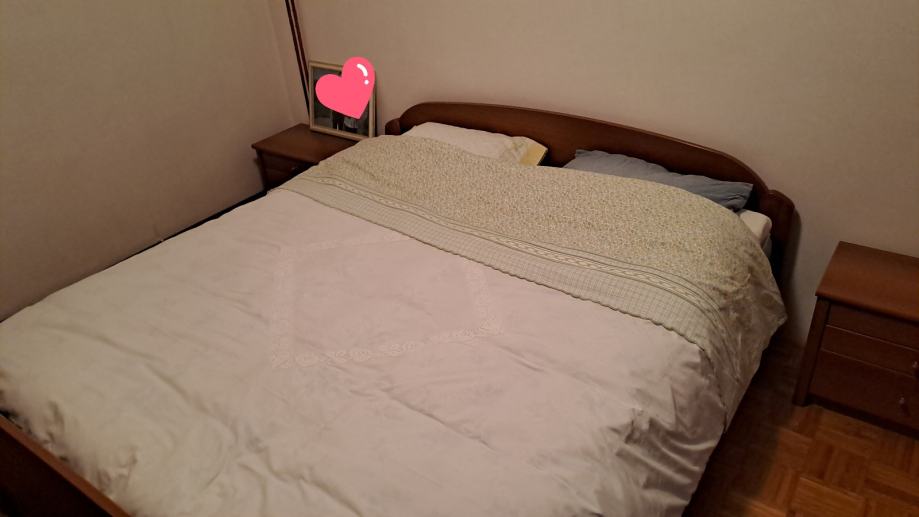 Postelja (200x180), pripadajoči nočni omarici, komoda in garderobna omara.